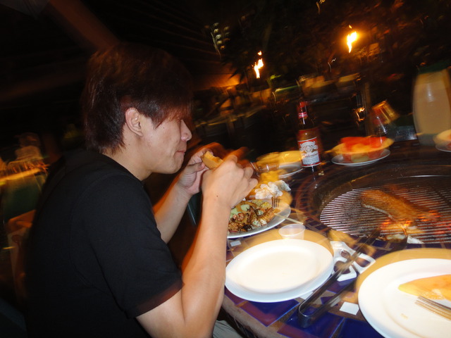 他唯一有所表的英文是在最後一天了海的BBQ!
