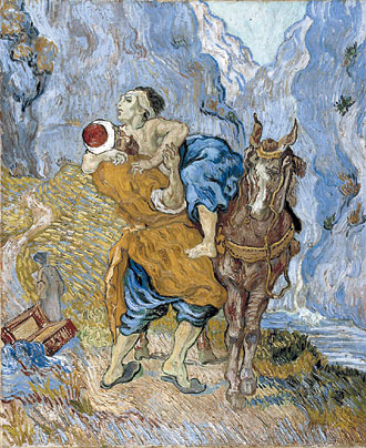 收藏於荷勒穆勒美。梵谷受浪漫派大德拉克洛瓦的所吸引,他模仿德拉克洛瓦的「好撒利人」的作,具厚宗教色彩,展梵谷的慈悲情。