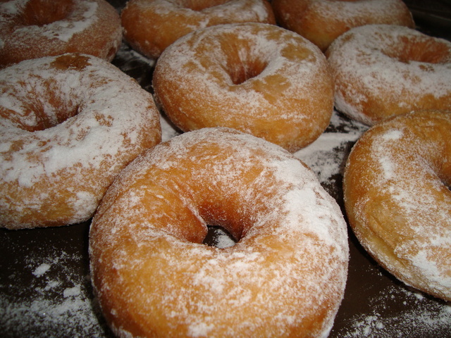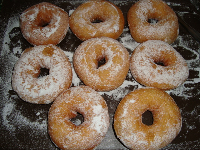 水蒸蛋糕 材料:蛋3 糖80克(已糖) 泡打粉2克 香草粉少 少 低粉100克 做法:一蒸先水用 蛋白蛋分 蛋白加糖打盆底下再放一大一的盆子放些水蛋白易打 蛋白打後加入蛋用"低速"拌均粉分次加入比容易拌均 取一模具抹些油防沾倒入糊抹平 放蒸以中火蒸12分 加沙拉油的水蒸蛋糕吃起乾乾的在真的烤箱烤出的蛋糕好吃 水蒸蛋糕到最後乏人津人"交"是我勒吃 = =" 家人比是比啦!!!!! 糖粉的它~ ~ ~ 胖嘟嘟的甜甜圈~