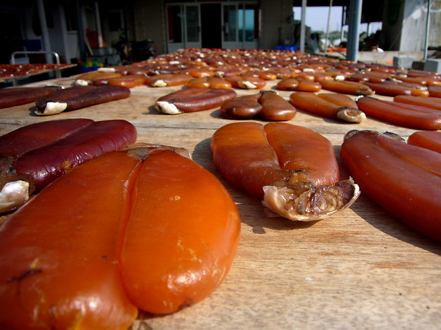 正宗鹿港吃法:子抹上少米酒,切大薄片,配上白和大蒜,味十足!因鹿港子日曝,所以子的比乾燥,因此,直接食用就能吃到子原本的味!