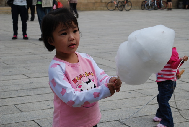 吃完一大的棉花糖,著黏的小孩去洗手洗嘴吧!