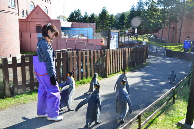 到北海道的朋友,一般也到旭山物景。旭山物有企,不,因地形的,怕害到企的,因此旭山的企只在冬天有下雪的日子才有企散步的活。