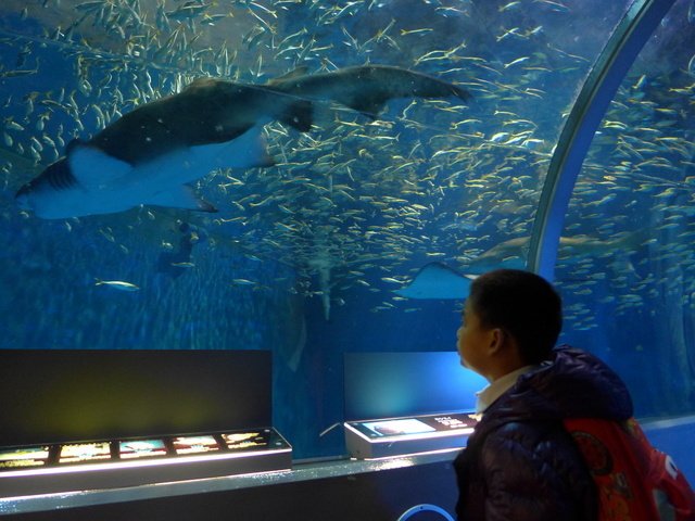 通扶梯,一是海洋生物的近距接。