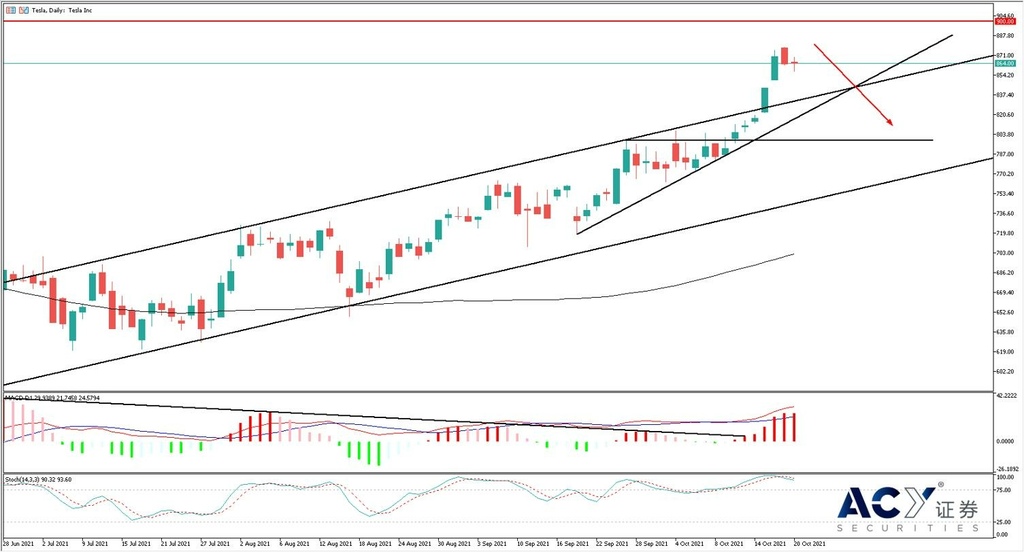 特斯拉日看,在整科技板回的口,唯特斯拉奈定上。 100日均向上,提供完整支,多局明。 指方面,MACD柱此前放多重背信,但伴近日的股加速上,扭了利空。 不指形成超死叉,面史高位900大,存在技面消息面的短阻力。 交易策略可以用逢高做空主,注MACD的高位死叉入信。 下方的支在840和800位置。