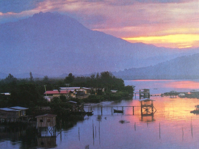 STILT LIFE IN MENGKABONG / 香格里拉渡假村的明信片 背後立的就是 赫赫有名 4010 公尺高的 神山 MT. KINABALU