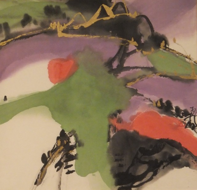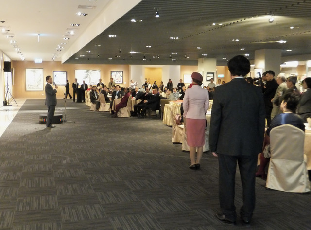 2013年4月10日下午 14:30 受邀前往加 朱振南 大《日升月迎春》展的幕酒。 由就是背後的一幅【玉峰日恒美永昌】作。