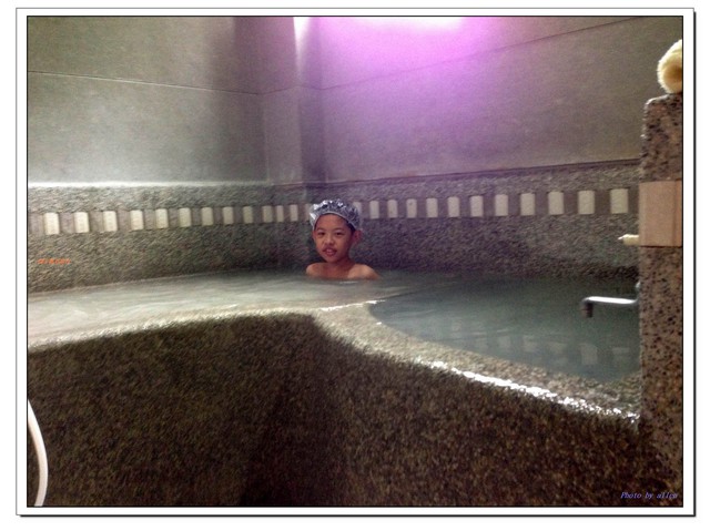 吃早餐後得泡得不,於是把房的浴池物其用一下...