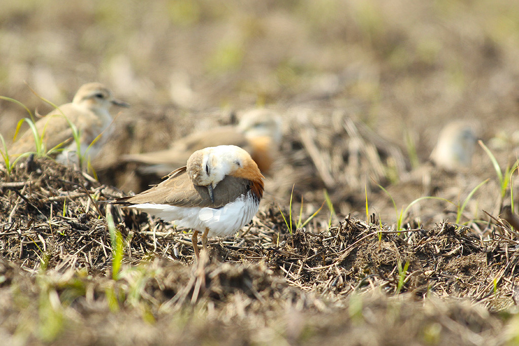 高挑的岸。嘴黑色、短尖。橙色,略。雄繁殖羽、白色,淡灰褐色,眉斑略白。上暗褐色,有很的棕色羽。胸部的橘色,胸腹之有黑色,腹部到尾下覆羽白色,尾短尖。雌的繁殖羽似雄,、的白色不明,呈淡褐色。非繁殖羽相素,胸前的橘色及黑色消失。行可翼面羽及翼下覆羽均黑褐色,白色翼而不明。