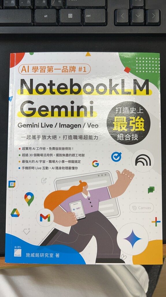 【:施威研究室,《打造史上最 AI 合技!打造史上最 AI 合技!NotebookLM / Gemini/ Gemini Live / Imagen / Veo 一起手放大,打造超能力》,台北:旗科技,2025年7月初版。】