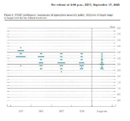 北京9月18日凌晨2:00,最新的邦公市委(FOMC)政策要如市期那,邦基金利率的目降低25基,整後的4.00%至4.25%。著自2024年12月之後,首次取了降息措施。值得注的是,11名委中,10人支持降息25基,新任理事史蒂芬米支持降息50基,示部降息幅度有分歧。