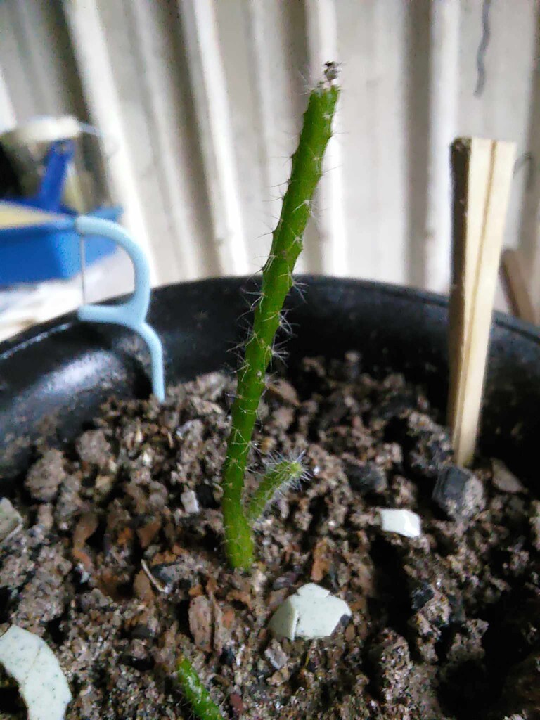後,想到特瓶的部打些小洞(好能透)——哪知道想是有洞,打得大了,是被一小小的牛侵入,啃到只剩下一小截(三公分),看,是差不多要「完蛋」啦!