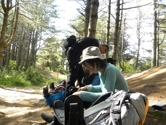 6.8K登山口午餐,此的光影美,人彷被一古老底片的氛固在一下,其甘。有的同伴去到小溪汲水、呆、洗,有的坐在二松大下用餐,松地,了去又忍不住了回,群人在笑些什,著什,那有趣。