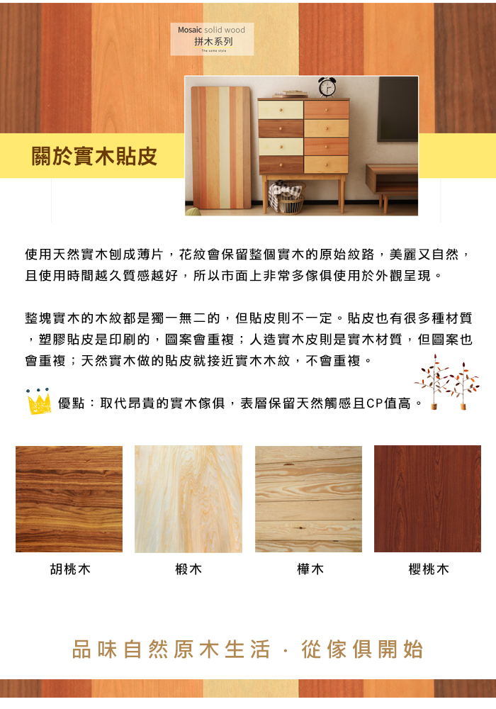 ◆ 天然木皮(木/椴木/胡桃木/桃木),保留木原始味!