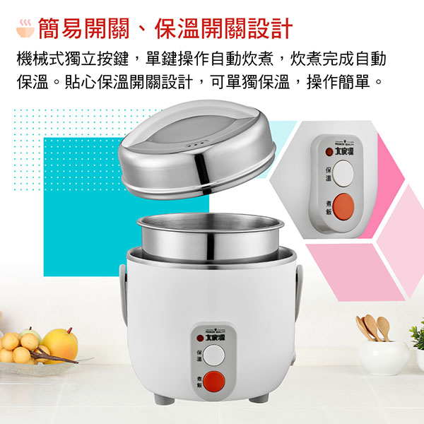 商品息特3人份,小家庭、外宿族必!械式立按,操作自炊煮,炊煮完成自保;304不、接外,好清洗!
