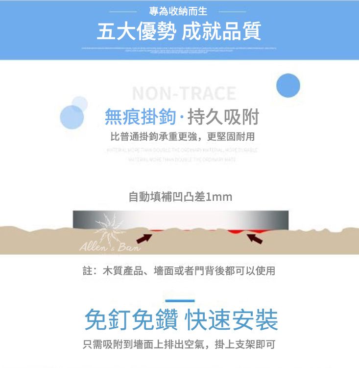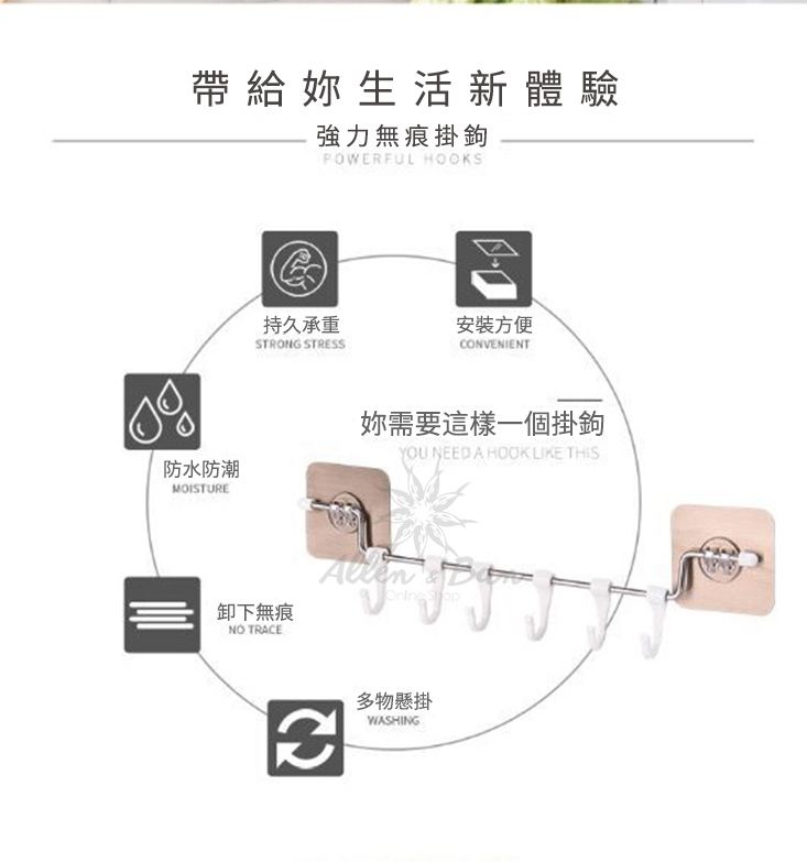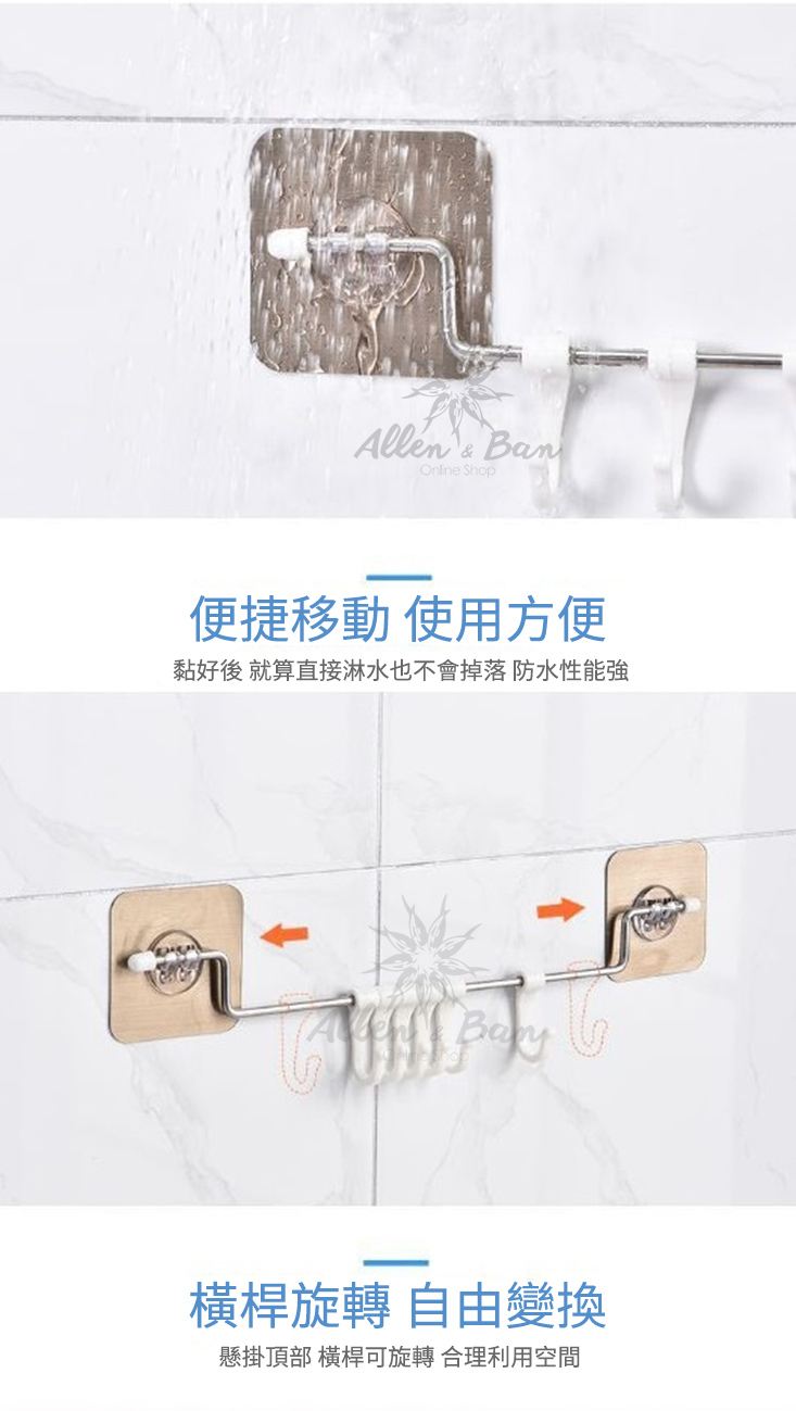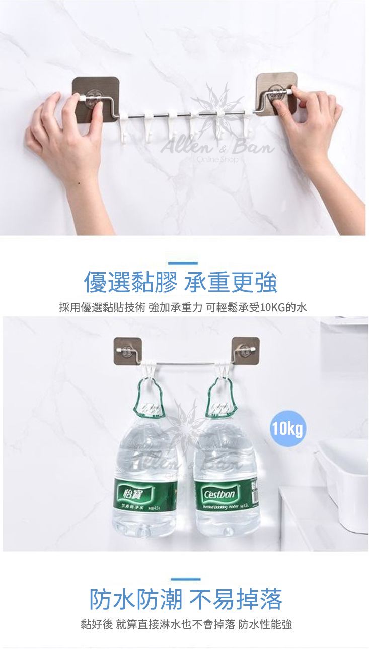 黏,免免且比普通勾承重更,更固耐用,承受10kg的物品~防水防潮功能直接淋水也不掉落~可旋