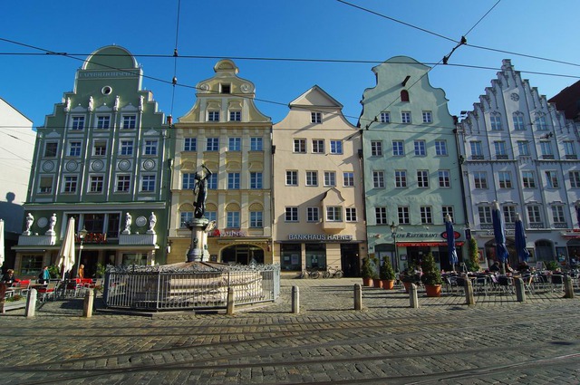 Augsburg 是浪漫之路巴士停靠站之一, Fussen 搭火在下之後,接往 Rothenburg ob der Tauber 的 Inter City 火有近三小才,趁空,就先逛逛 Augsburg 吧!由於火站看到寄物,背著沈重背包又走不快,而且城堡所在位置距市中心也不近,不利因素集,乾脆就不去城堡而只逛市中心城