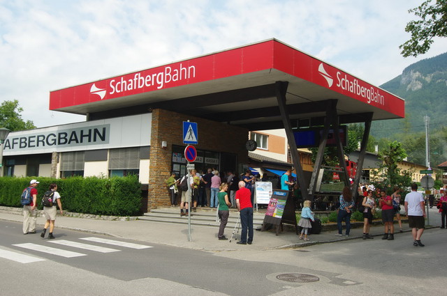 巴士在St. Wolfgang的站是夏夫山登山火站,可以票乘登山小火直上一千七百多公尺高的夏夫山360度景台