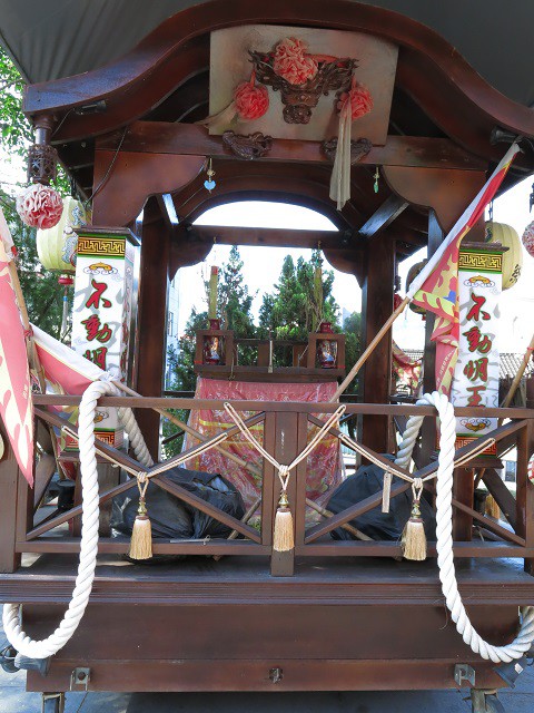 大成殿旁的火王神,每年7月底8月初,子火王祭,大家穿上色的祭典服,推著神著火王在子境。