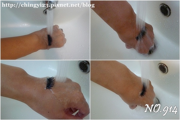 我用水原浪睫毛接著把假睫毛黏在手背上,然後水,