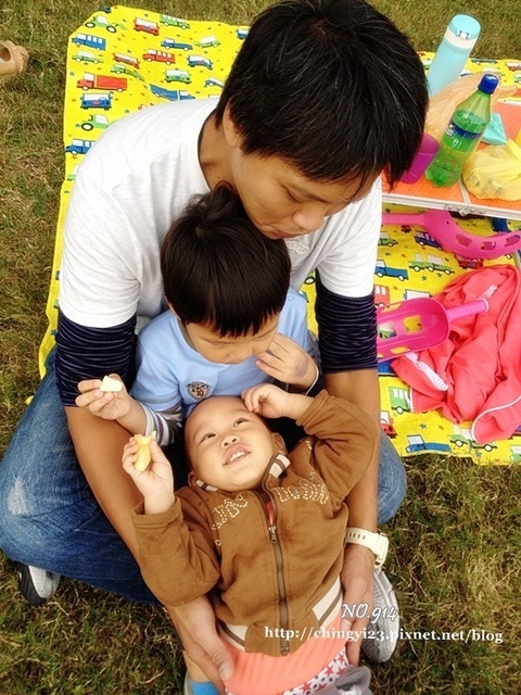 孩子跟林老玩起旋球,我可以在一旁看嗑水果。