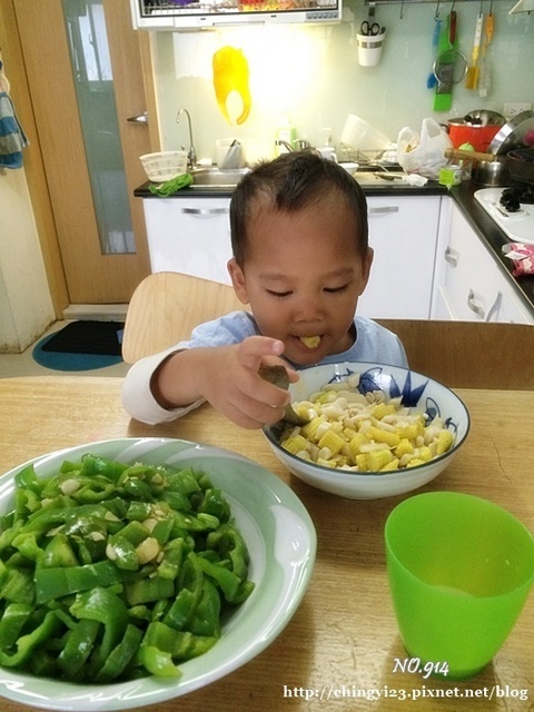 再炒青椒、玉米混雪白菇就交差!