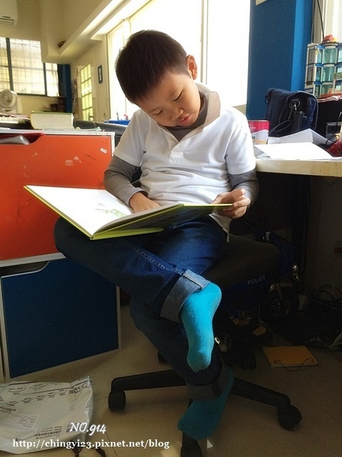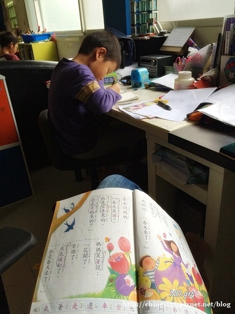 下午始笑牙功,他要期中考了。