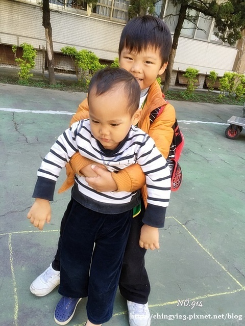 早上送臭胖虎到校,在鞋遇到了好位班上的同,