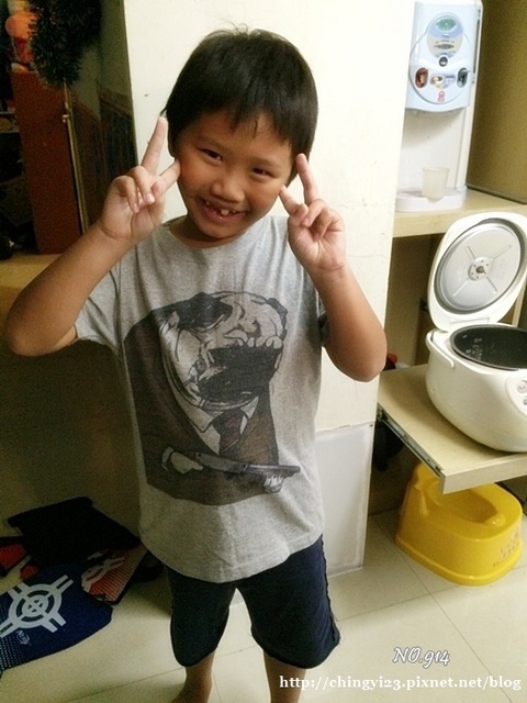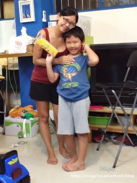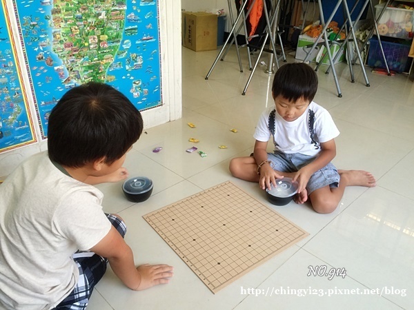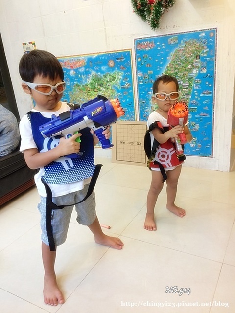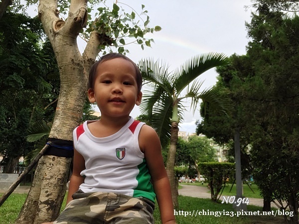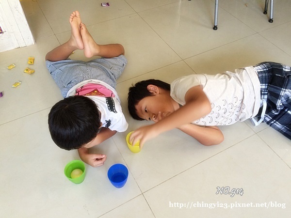 我有自水,笑牙跟胖虎玩著追逐射的。