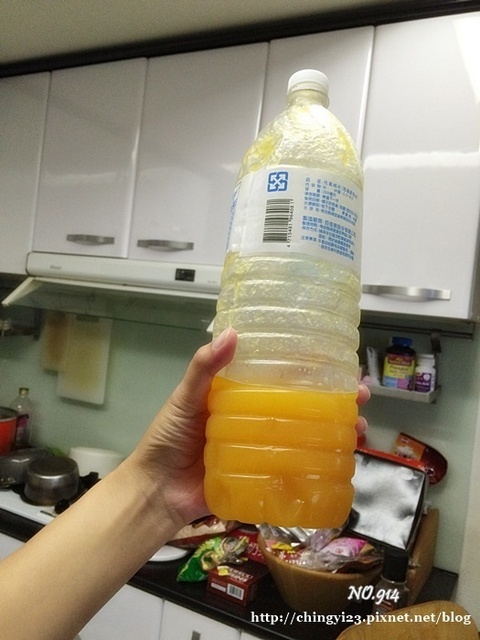 我只好把它打成果汁,拿了一些果汁放冷冰棒。