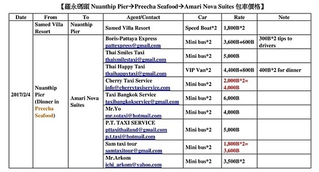 | 2/2 | Es Ta Te Resort (leave the luggage in Amari Nova Suites) | Nuanthip Pier | Boris-Pattaya Express pattexpress@gmail.com +66 08-0002-33-77 | 2,000B*2= 4,000B (no extra pay) |