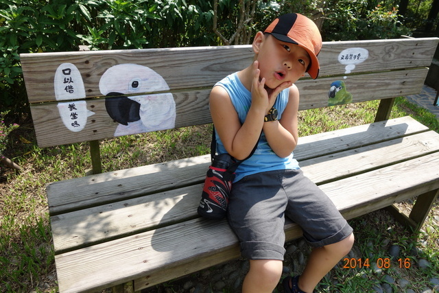 "麻....你要不要上? 看得更清楚唷!"小益力推著
