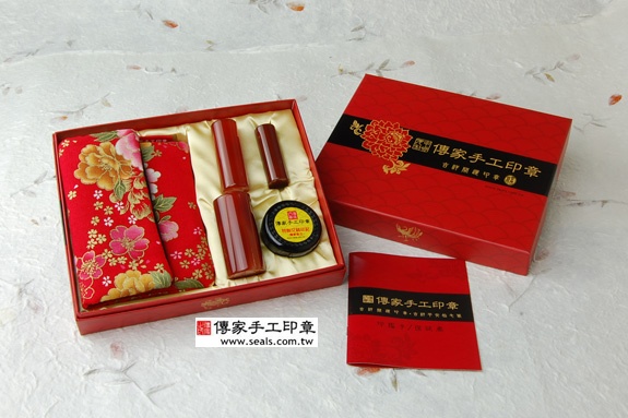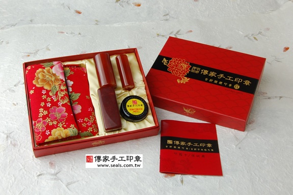 2. 家手工印章━「瑙日本/公司印章的成品」。包含:瑙日本/公司大小印章、全手工印章外出袋、印泥、家手工印章的保、精美中的印章外盒(印盒有四大水神:左青、右白虎、前朱雀、後玄武)。