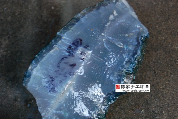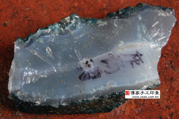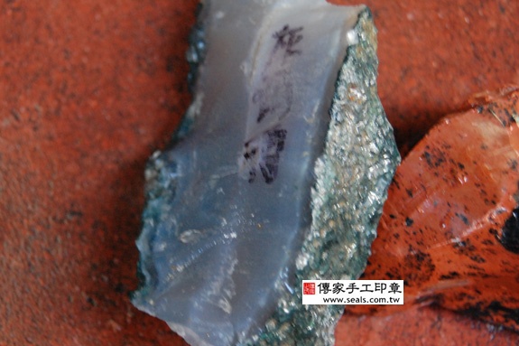l 以刻印,因瑙的硬度很硬,印材法用「篆刻刀」去刻,只能使用手工和作模具,以及用大型砂去型,才能文字刻印在瑙印章上面。