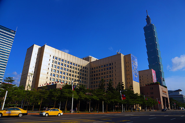 照片:泰金控大南面的面方直立玻璃窗上可以完整的映著整座101大
