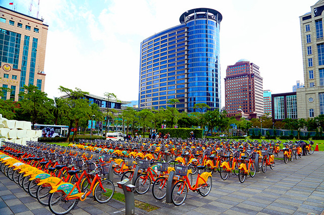 照片:捷市政府站3出口旁,全最大的UBike租借站
