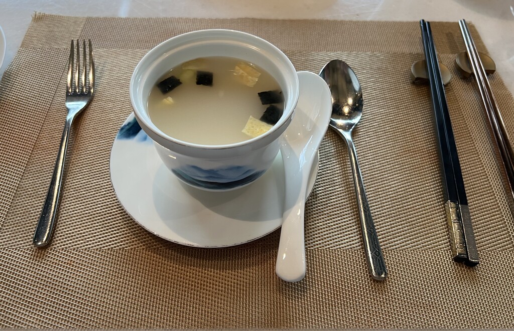 甜外面裹了花生粉的芝麻,每人分到3粒。非常好吃,大家一致同是今天套餐最好吃的西。