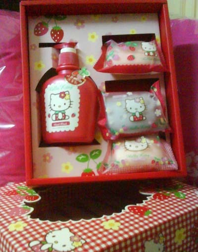 Pele的冰盒加咖啡色毛衣外套和TracyHello kitty 沐浴盒。