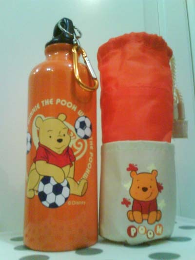 Deary的小熊尼水瓶和Pele米老鼠背袋和一黑色三孔料,Tracy垂涎那米老鼠背袋。