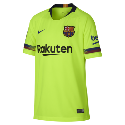 2018/19 FC Barcelona Stadium Away 大童足球球衣採用透氣排汗材質,場上場下均能常保涼爽舒適。