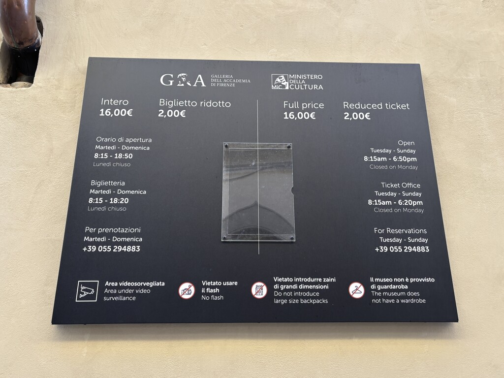 院美 La Galleria dell'Accademia https://www.galleriaaccademiafirenze.it/en/visit/Via Ricasoli, 58/60, 50129 Firenze FI, 大利8:15-16:20 (一休)票€16+4(路用)