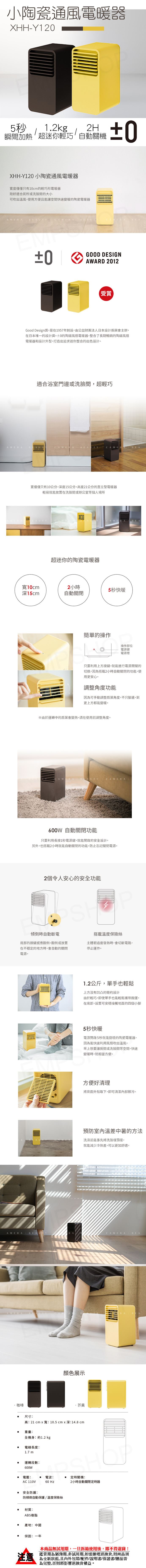 【正零±0】小陶瓷通暖器 XHH-Y120 送推,年送