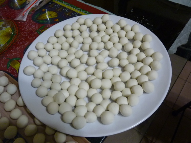 明天啊,明天才冬至啊。我不假思索就答,但再想一下,明天晚上搓的,明天早上不就拜祖先了?不,搓一定要是在冬至前夕搓才。