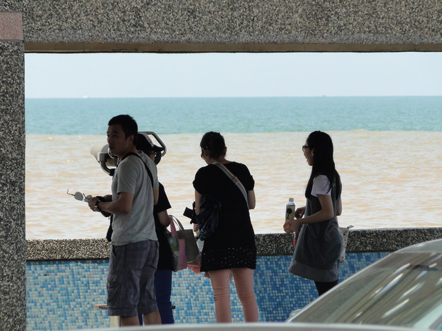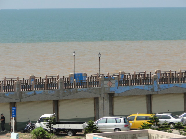 今天的天青朗,海水是美的,因此和混的泥水比得更加烈,好好一片海域就渭分明,在海水中一刀出色。