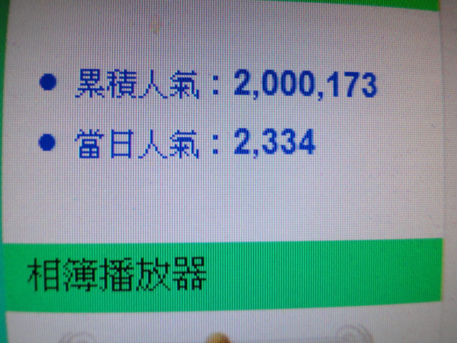 200次的客人到,於我而言是有喜也有期待的。那一天,目字就跳大,要身200俱部了,是很心的期待著,白石那天只我一人,忙在大比的一工作,是忍不住了窗,第一次著差六百多位,第二次再探,已是2000173的目字了,原想拍下正好200的目字,2之後一串的O,那多有趣,法啊,盼一瞬,目字就跳去了。