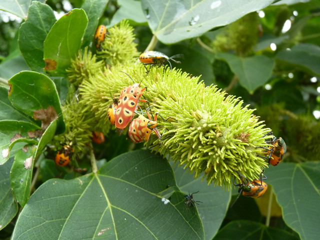 象也非常喜野桐,椿象卵刻意於背,卵整排列於片下,完卵的椿象用自己的身住所有的卵,整整一星期不吃不喝也不半步,直到若孵化止。若孵化後,兄弟姐妹感情,多天都形影不群聚在一起,一直待到大成,才各自自食、求偶而去。
