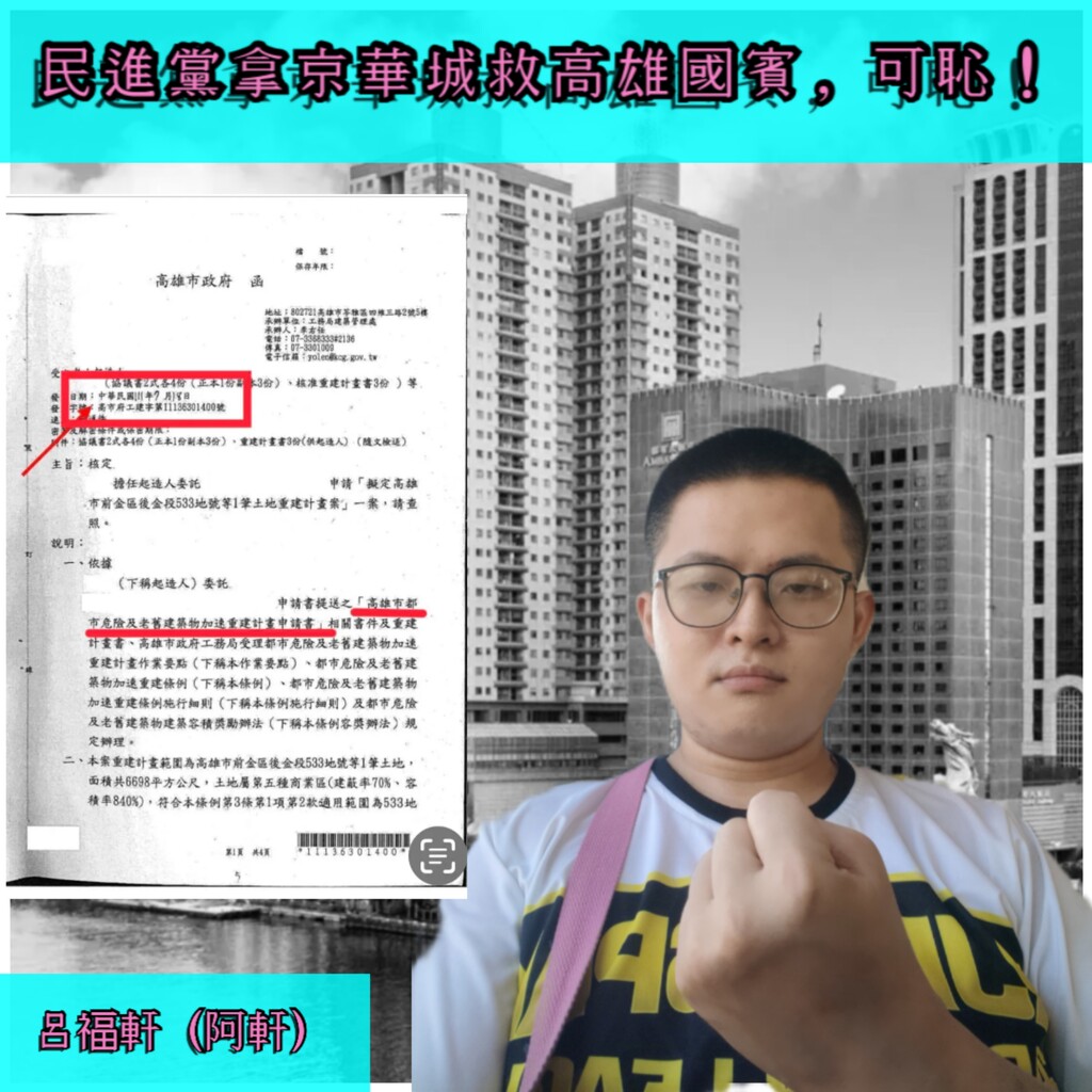 再,高雄危老建物加速重建申的核定是在2022年的七月十八,也就是其在高雄市任核定的,非瑜!瑜被你免成功的是2020年的六月六,也就是被你免成功之後的年,身一立委,也能撒?