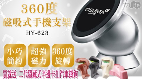 【OSUMA】360度磁吸式手支架(HY-623)+【魔法必】意生活二代藏式半卡扣汽1入"介如下~你可以考看看唷
