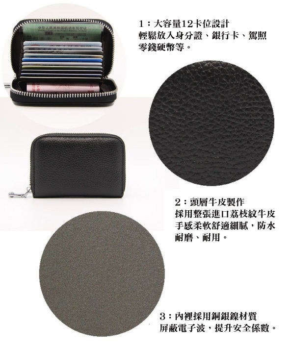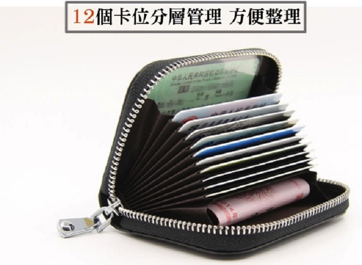 真皮加大防刷卡皮包,用RFID防技,避免宵小「隔空」,不用,外更精美。以整牛皮作,手感柔,大容量可放12卡片,重要的行卡通通放,你出更放心!