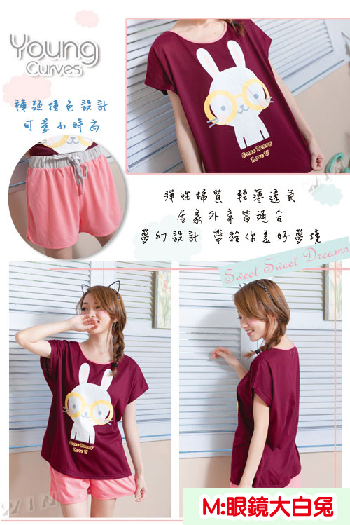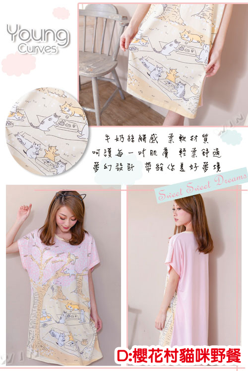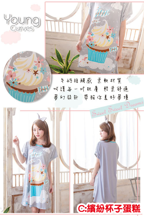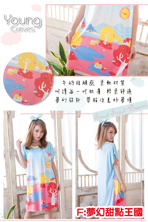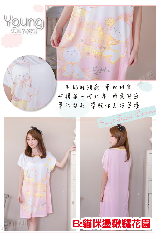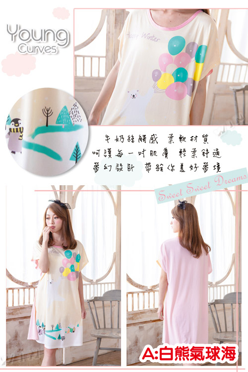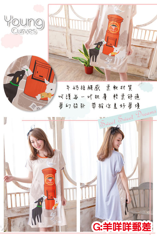 一送一【Young Curves】牛奶短袖身睡衣 任 ,推,箱,CP值,,,便宜,惠,介,排行,精,特,周年,,限
