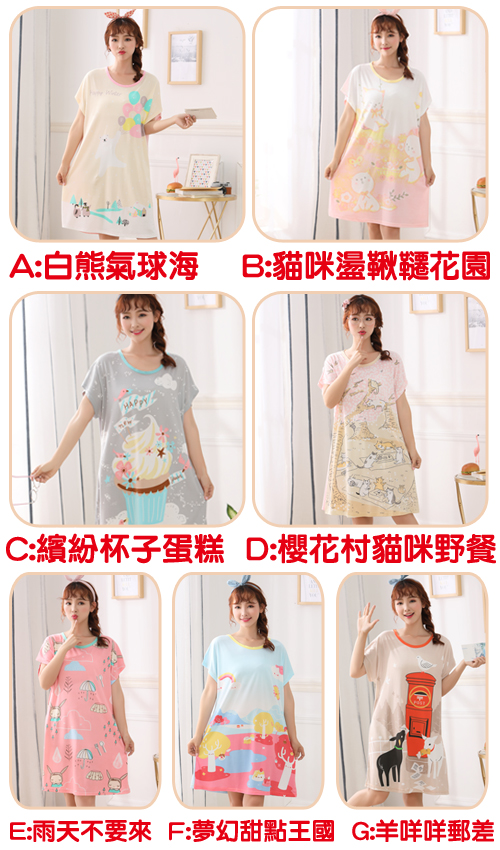 ♦♦牛奶短袖身睡衣♦♦ 款式A~G